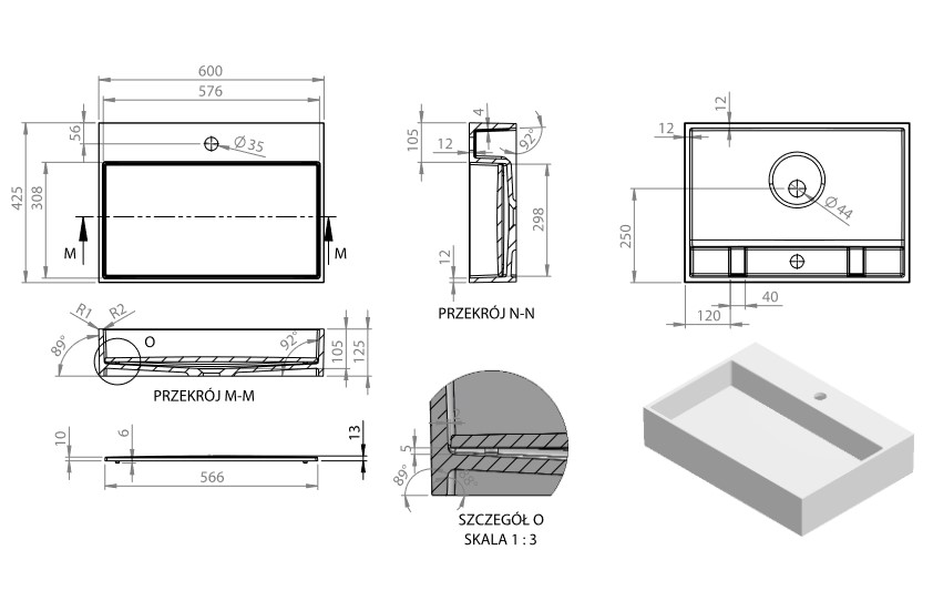 Materiał: Konglomerat z powłoką żelkotową