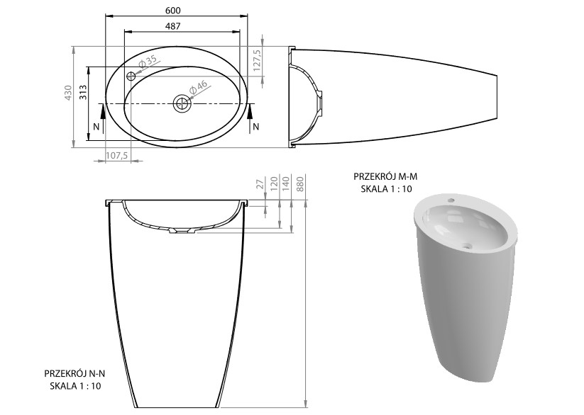 Vayer Boomerang Umywalka wolnostojąca owalna panel gładki bez otworu na baterię 60x43x88 cm biała 060.043.012.3-4.0.3.0.PG
