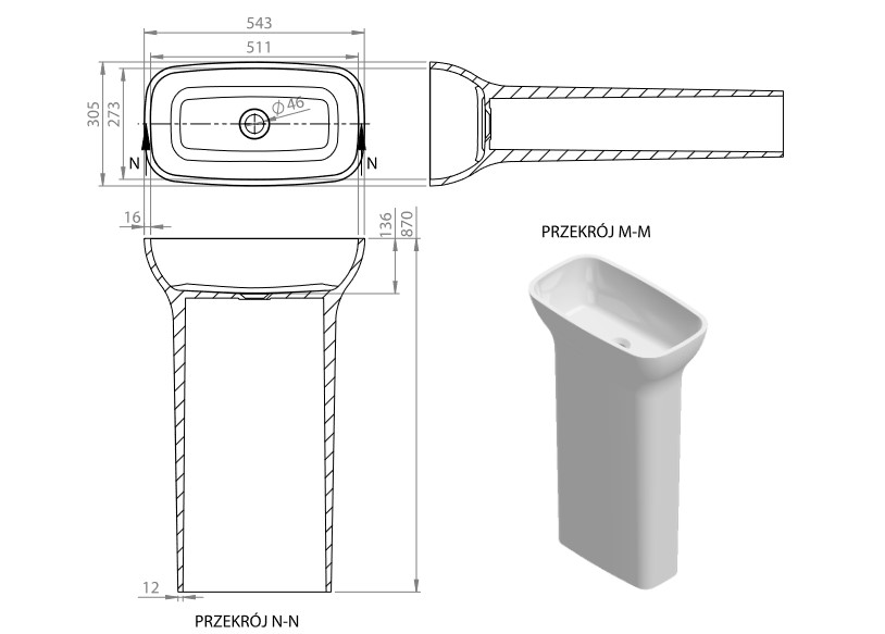 Vayer Serpens Umywalka wolnostojąca bez otworu na baterię 54,3x30x87 cm biała 054.030.013.3-4.0.3.0.0