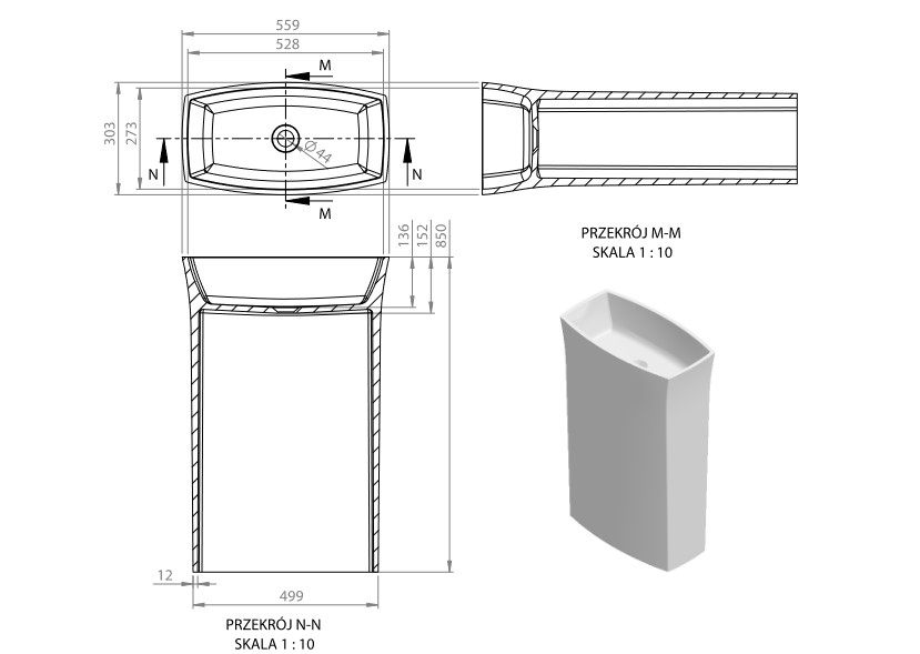 Vayer Gemini Umywalka wolnostojąca bez otworu na baterię 55,9x30,3x85 cm biała 055.030.013.3-7.0.3.0.0