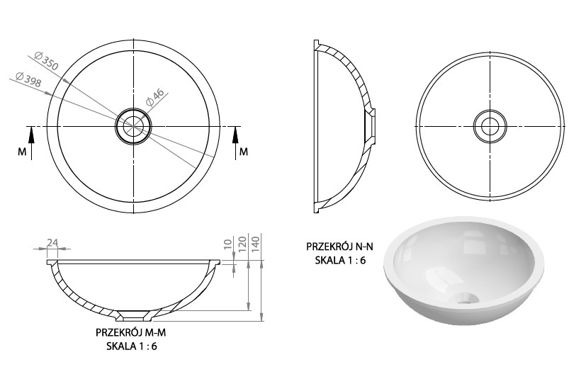 Vayer Boomerang Umywalka podblatowa, gładka bez otworu na baterię ø35 cm biała 035.035.012.3-5.0.2.0 B