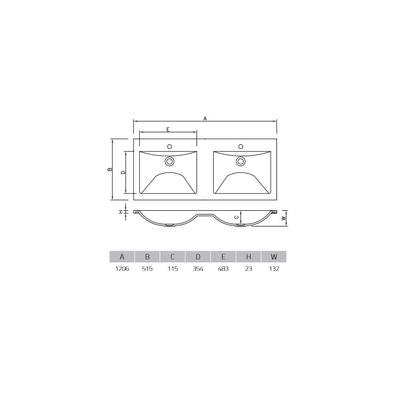 Vayer Aries Umywalka wpuszczana w blat podwójna z dwoma otworami na baterię 120,6x51,5 cm biała 120.051.011.3-1.0.1.X.X