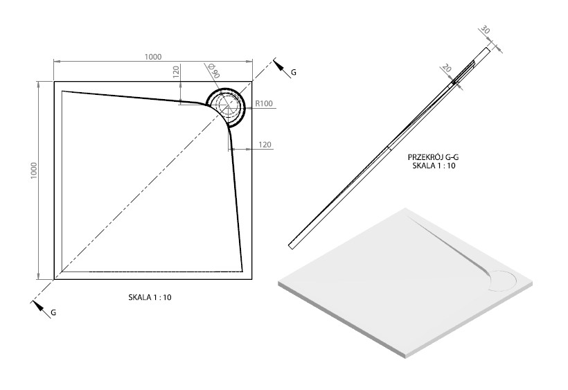 Vayer Boomerang Brodzik prysznicowy kwadratowy 100x100 cm biały 100.100.002.2-6.0.0.0.0