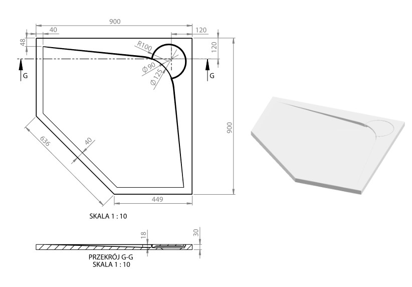 Vayer Boomerang Brodzik prysznicowy pięciokątny 90x90 cm biały 090.090.002.2-7.0.0.0.0