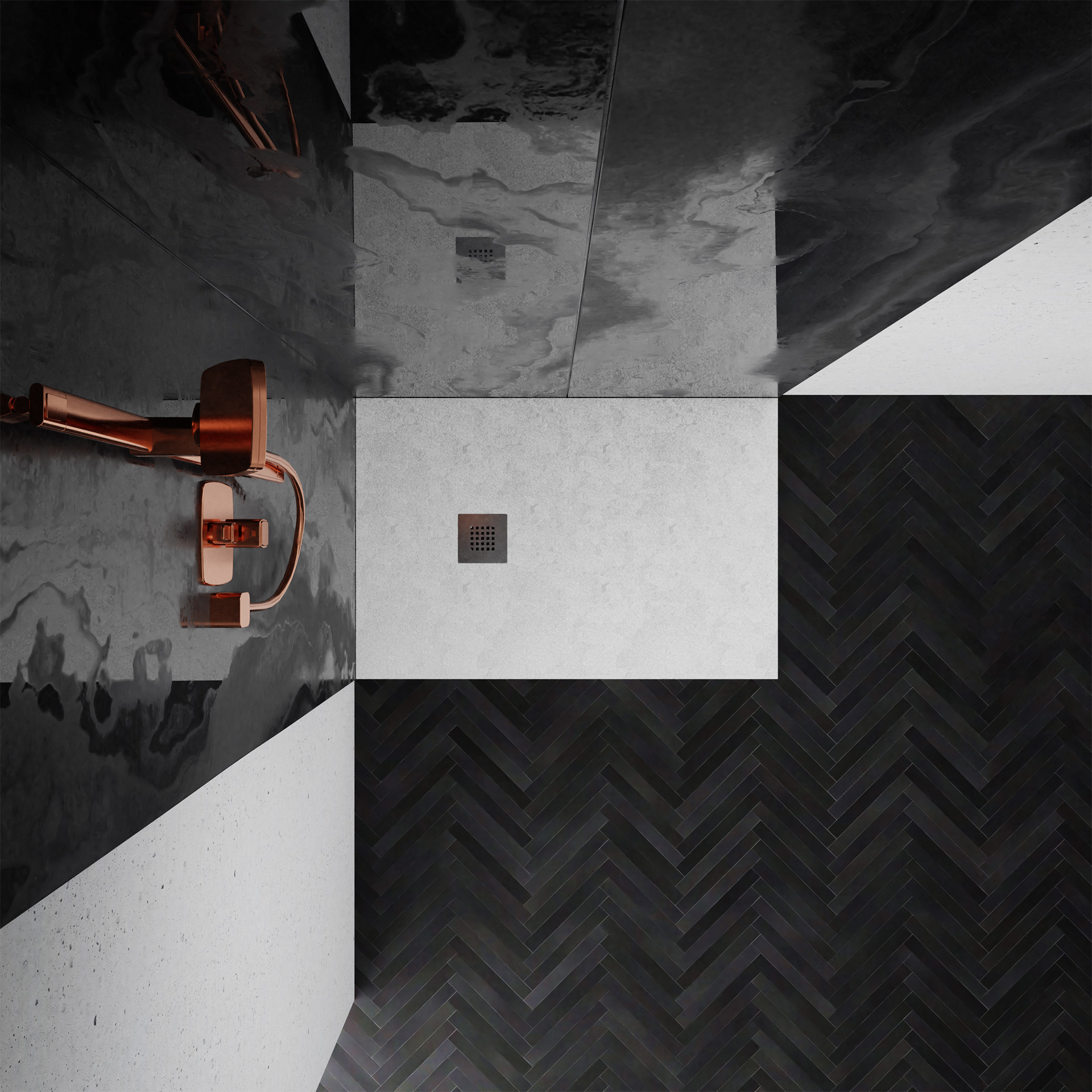 Brodzik Kronos w komplecie z nóżkami i imbusami. Maskownica odpływu w kolorze chrom, z jednej strony szczotkowana z zdrugiej strony polerowana.
