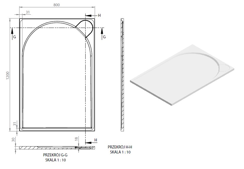 Vayer Virgo Classic Brodzik prysznicowy prostokątny 120x80 cm biały 120.080.001.2-1.0.0.0.0