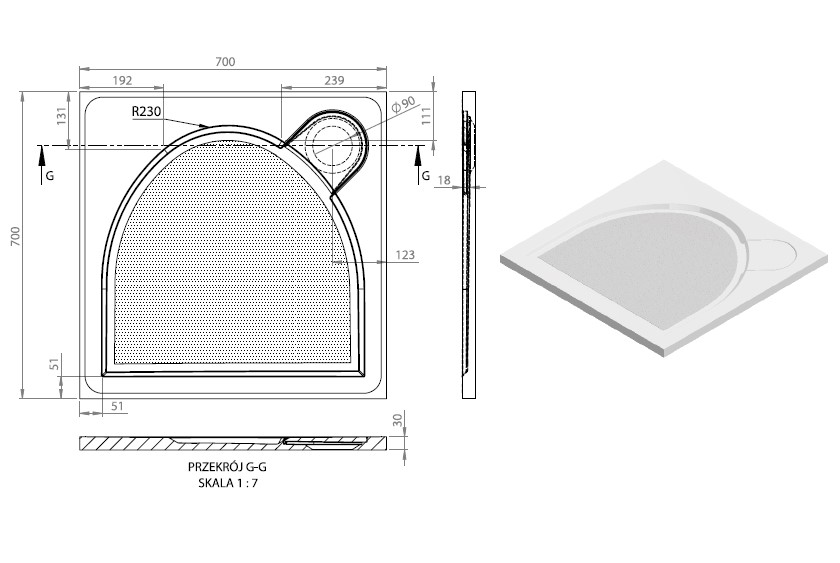 Vayer Virgo Brodzik prysznicowy kwadratowy 70x70 cm biały 070.070.001.2-6.0.0.0.0