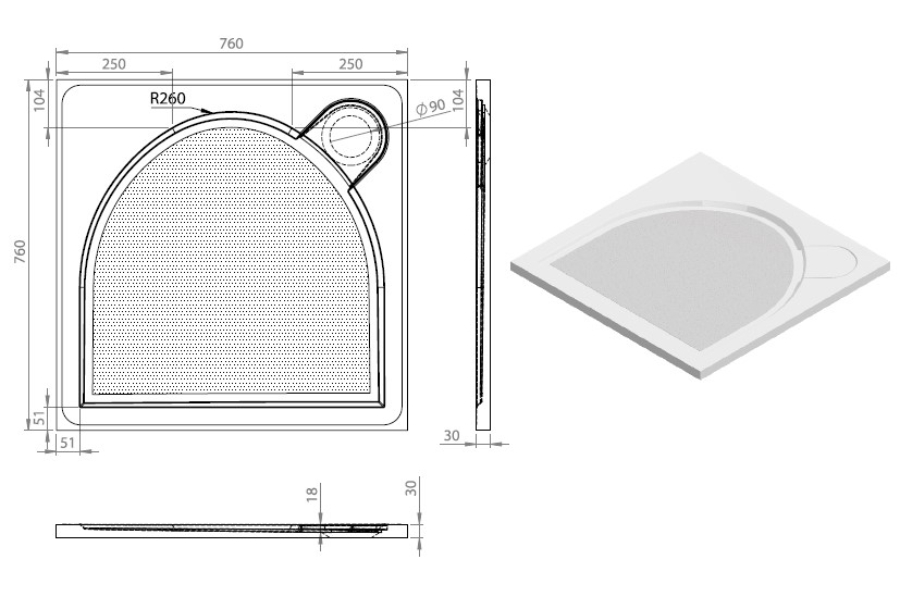 Vayer Virgo Brodzik prysznicowy kwadratowy 76x76 cm biały 076.076.001.2-6.0.0.0.0