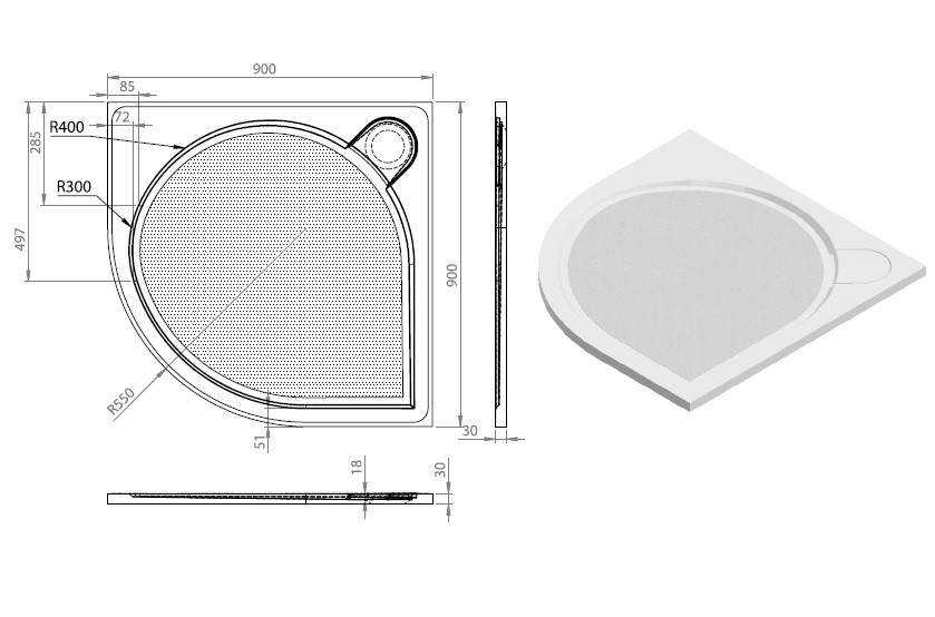 Vayer Virgo Brodzik prysznicowy półokrągły 90x90 R55 cm biały 090.090.001.2-3.0.0.0.0