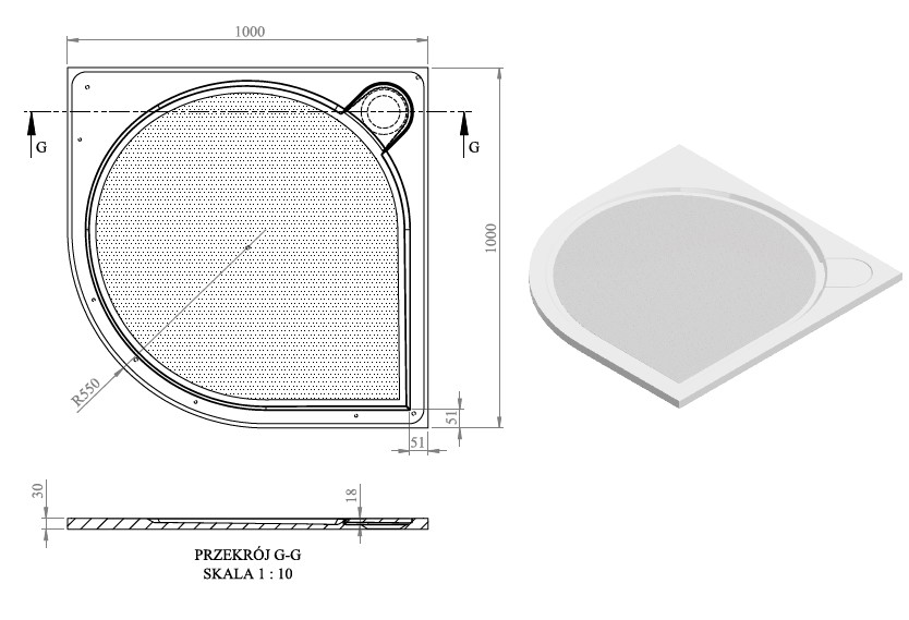 Vayer Virgo Brodzik prysznicowy półokrągły 100x100 R55 cm biały 100.100.001.2-3.0.0.0.0