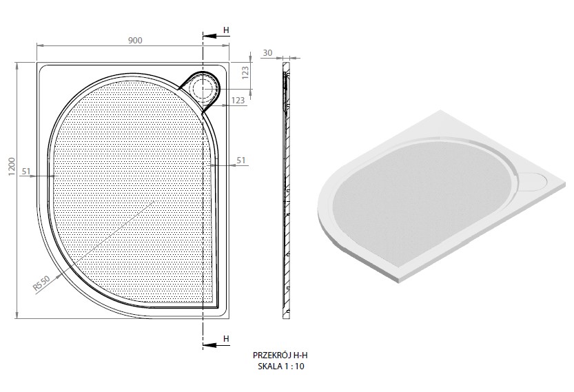 Vayer Virgo Brodzik prysznicowy asymetryczny 120x90 R55 cm biały 120.090.001.2-2.X.0.0.0