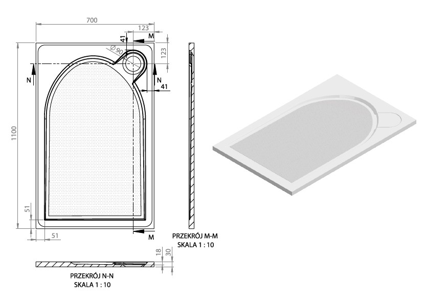 Vayer Virgo Brodzik prysznicowy prostokątny 110x70 cm biały 110.070.001.2-1.0.0.0.0