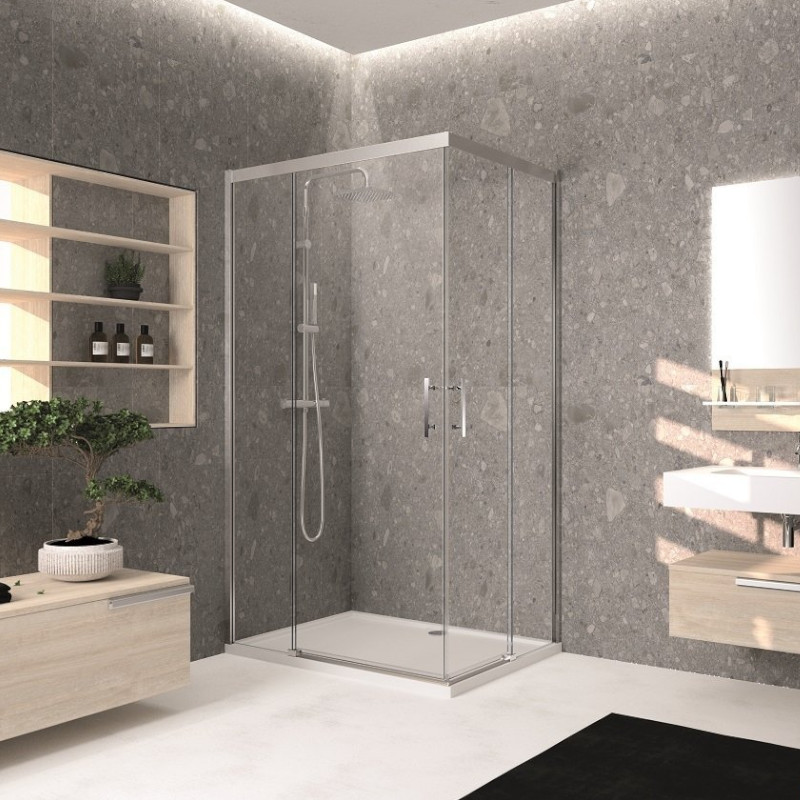 Novellini KALI AH Kabina narożna z drzwiami przesuwnymi 72,5-74 cm Srebrna KALIAH71L-1B