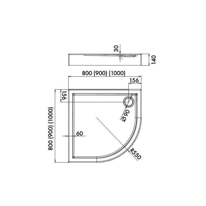Novellini CITY R Brodzik akrylowy półokrągły 100x100 cm Biały VRQ10014-30