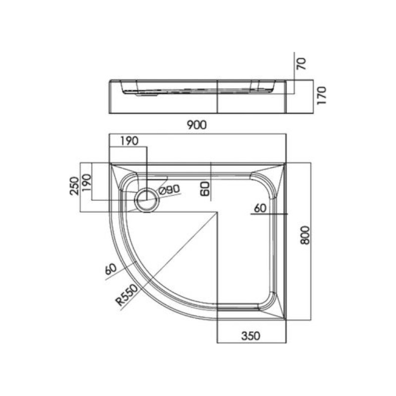 Novellini CITY R Brodzik akrylowy półokrągły 80x90 cm lewy Biały MNQ809017S-30