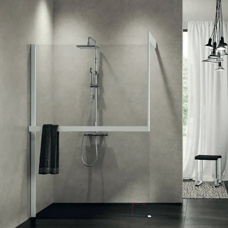 Novellini KUADRA H Frame zestaw z relingiem na ręcznik, mocowanie do ściany szklanej kabiny, lewy Biały mat R80KUFRE10S-U