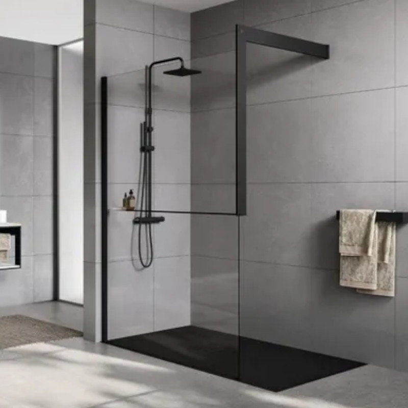 Novellini KUADRA H Frame zestaw z relingiem na ręcznik, mocowanie do ściany szklanej kabiny, lewy Czarny mat R80KUFRE10S-H