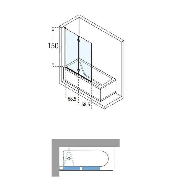 Składany, dwuczęściowy parawan nawannowy w wersji prawej.