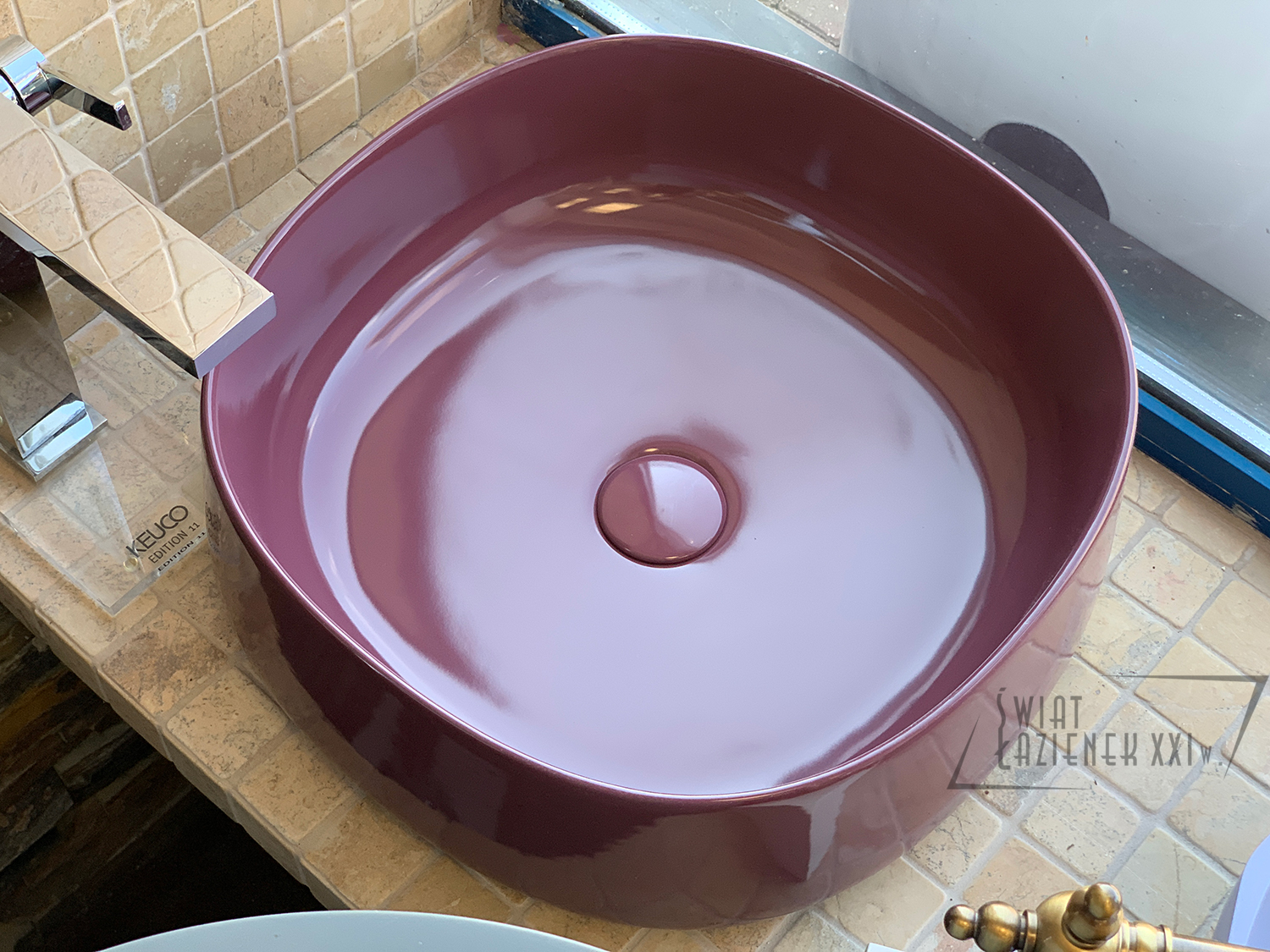Olympia Ceramica Paddle Umywalka z korkiem 42x42 aubergine glosssy PAD4B42016+PIL01C16