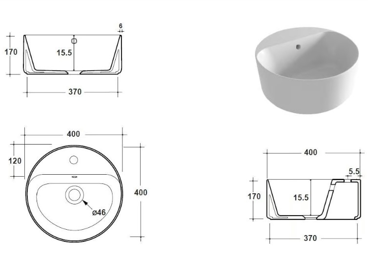 Olympia Ceramica Linea Umywalka Ø40 biały połysk OPE42TO40101