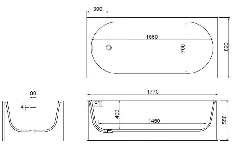 Olympia Ceramica Wanna wolnostojąca z korkiem klik klak 177x82 biały połysk VAORM17711