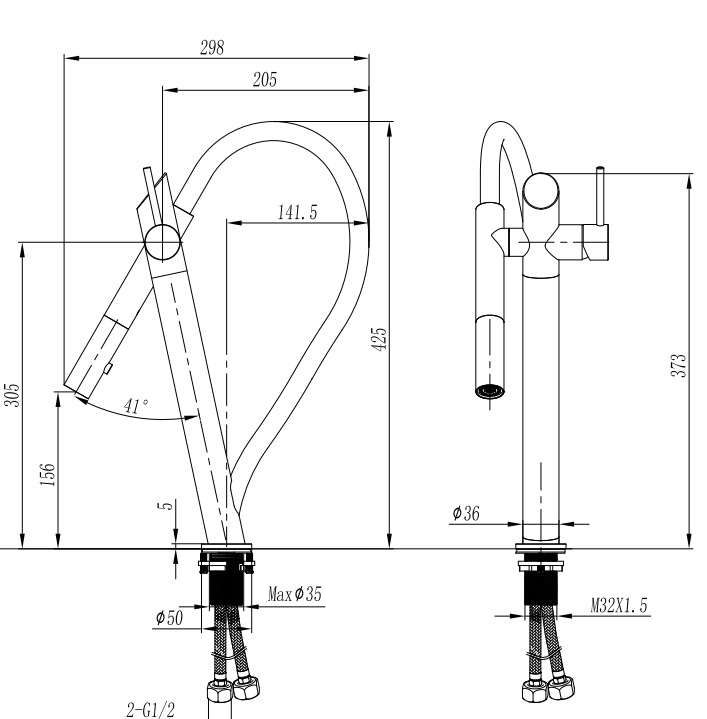 Galatea Design Orion Bateria kuchenna z ruchomą wylewką czarny mat GD620MB