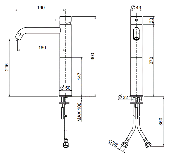 Wysokość wylewki: 21,6 cm