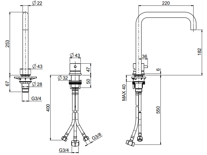 QuadroDesign Source Bateria umywalkowa brushed stainless steel 1208AS