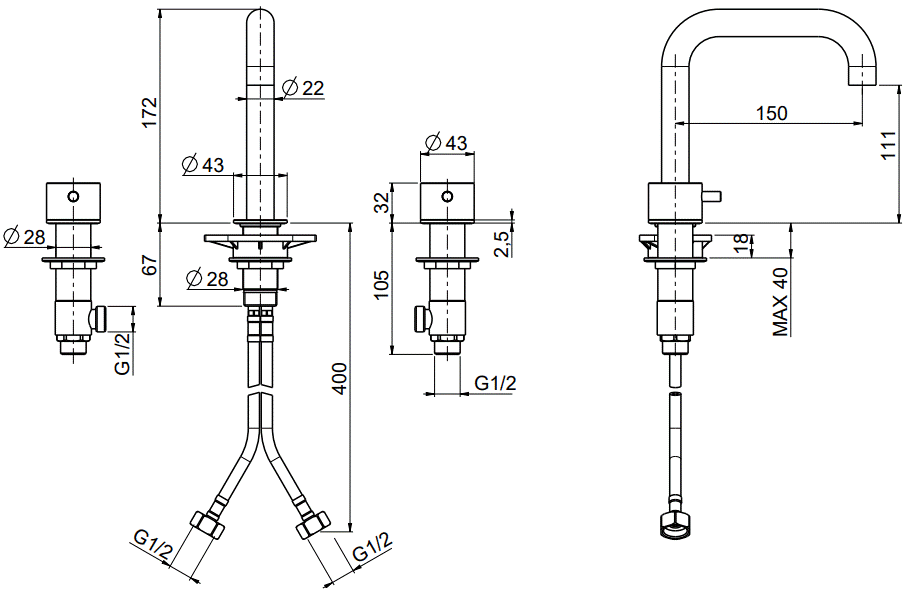 QuadroDesign Source Bateria umywalkowa brushed stainless steel 1296AS