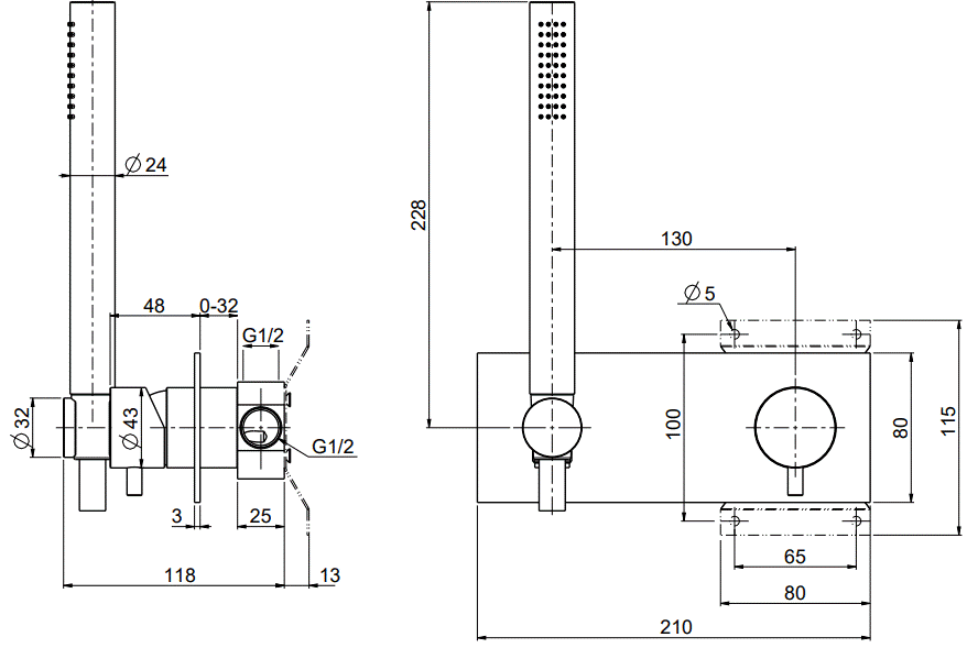 QuadroDesign Source Bateria prysznicowa podtynkowa ze słuchawką i wężem brushed stainless steel 1258R.00AS