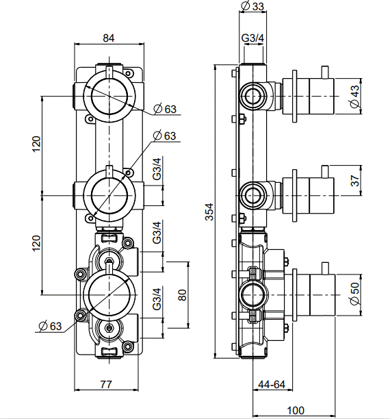 QuadroDesign Source Bateria prysznicowa termostatyczna podtynkowa z 2 zaworami odcinającymi brushed stainless steel 1249.00AS