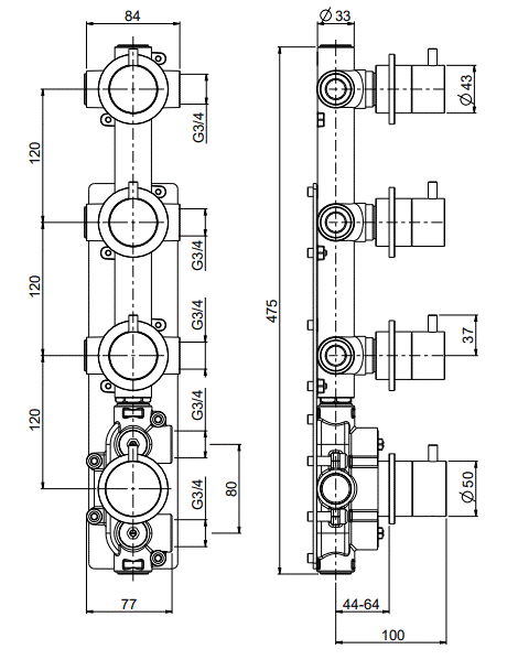 QuadroDesign Source Bateria prysznicowa termostatyczna podtynkowa z 3 zaworami odcinającymi brushed stainless steel 1250.00AS