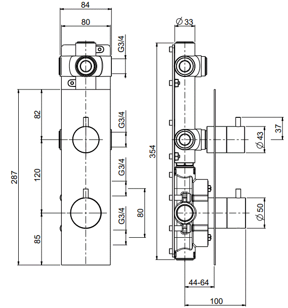 QuadroDesign Source Bateria prysznicowa termostatyczna podtynkowa z zaworem odcinającym brushed stainless steel 1288AS