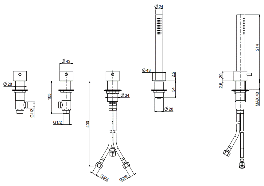 QuadroDesign Source Bateria wannowa na brzeg wanny 4-otworowa brushed stainless steel 1297AS