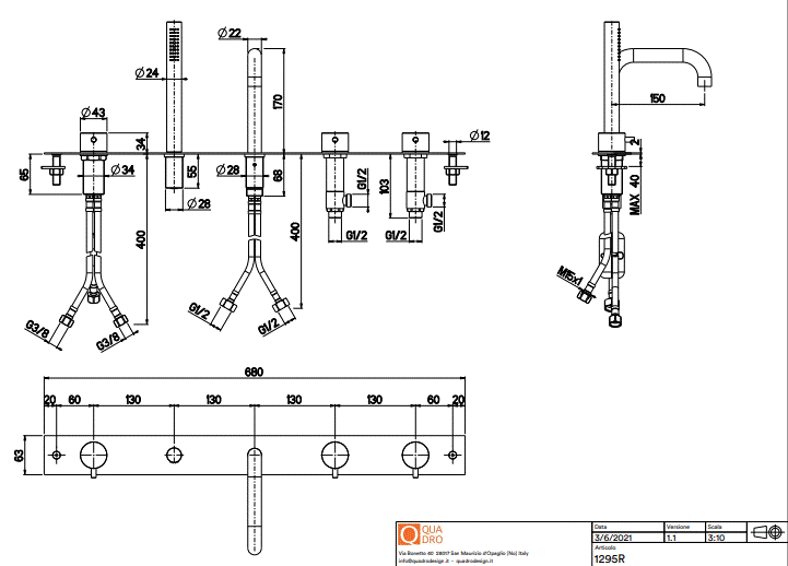 QuadroDesign Source Bateria wannowa na brzeg wanny 5-otworowa brushed stainless steel 1295RAS
