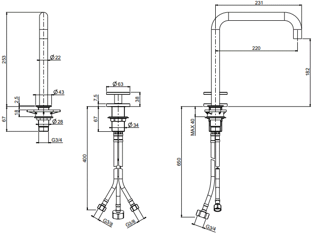 QuadroDesign Valvola02 Bateria umywalkowa brushed stainless steel 2032AS