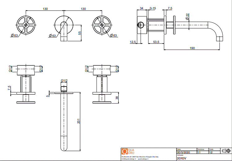 QuadroDesign Valvola02 Bateria umywalkowa podtynkowa brushed stainless steel 2010VAS