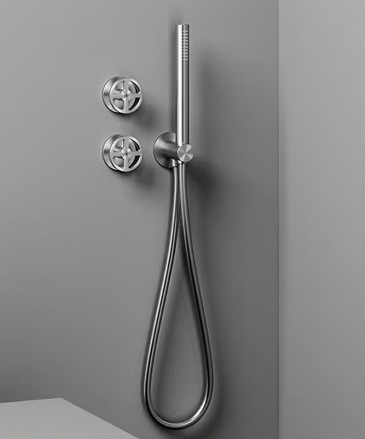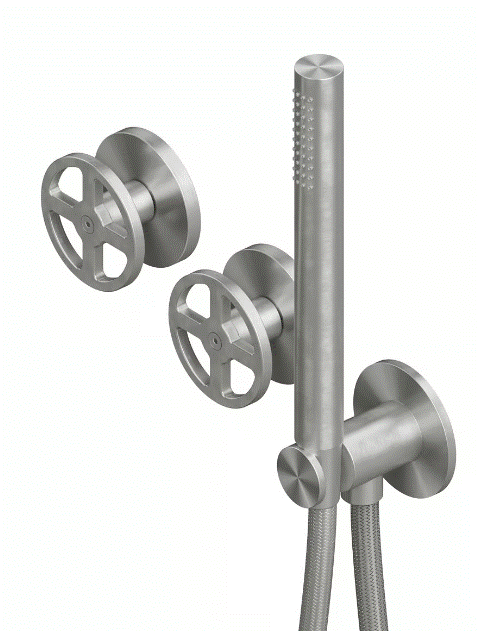 QuadroDesign Valvola02 Bateria prysznicowa podtynkowa ze słuchawką i wężem brushed stainless steel 2068AS