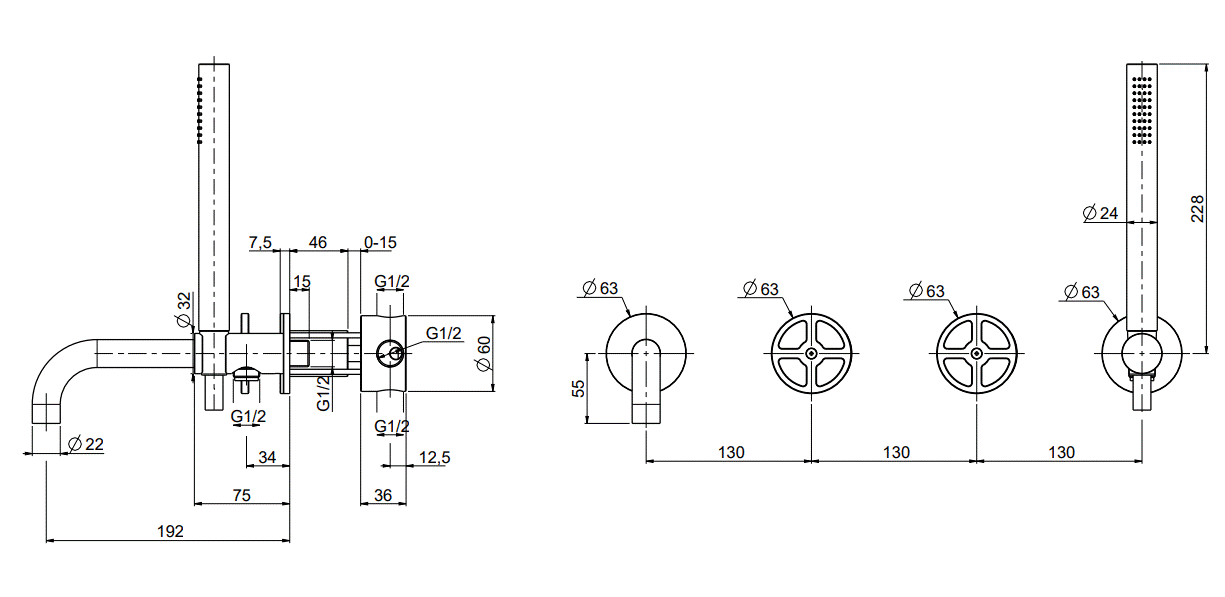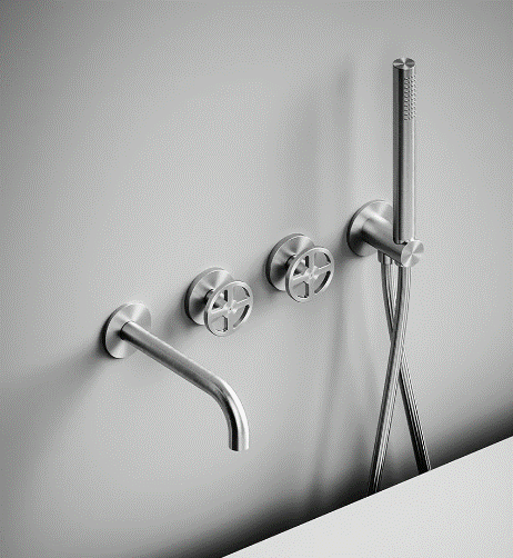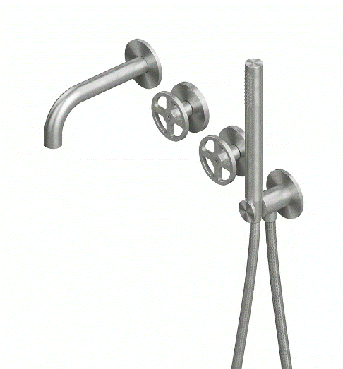 QuadroDesign Valvola02 Bateria wannowa podtynkowa ze słuchawką, wężem i wylewką brushed stainless steel 2069AS