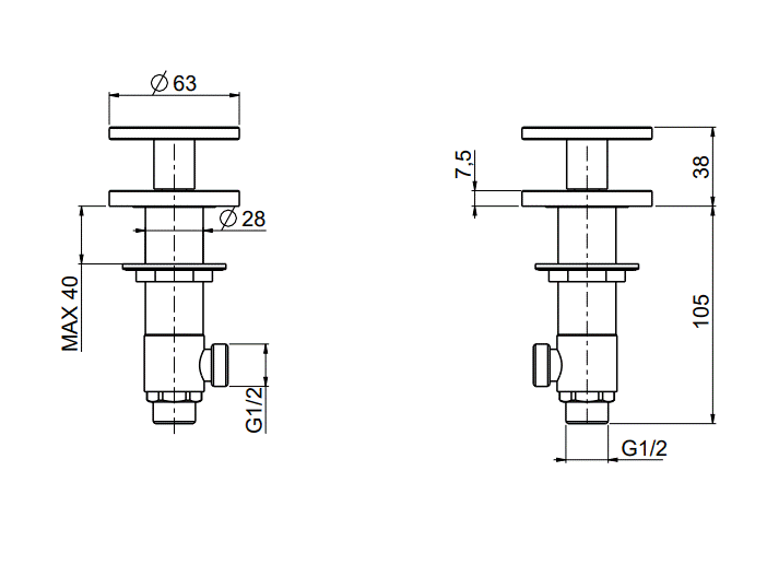 QuadroDesign Valvola02 Zawór odcinający (para) podtynkowy brushed stainless steel 2051VAS
