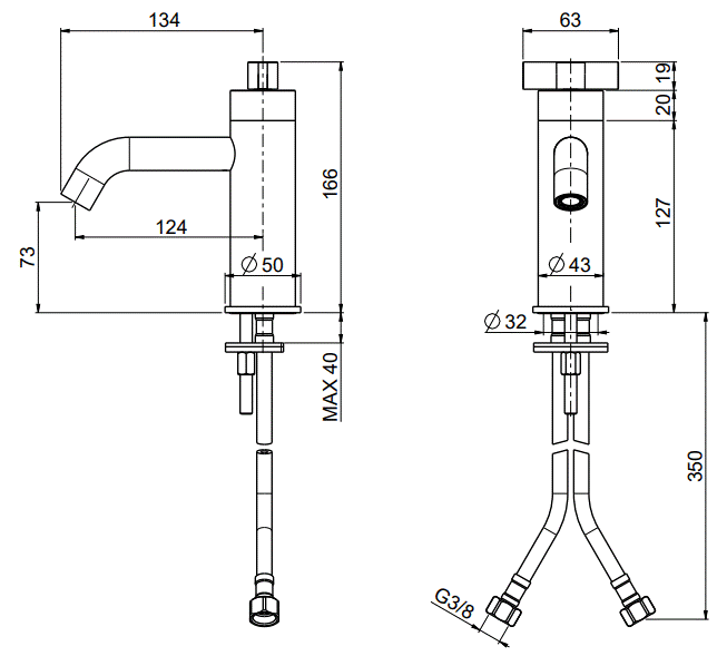 Wysięg wylewki: 12,4 cm