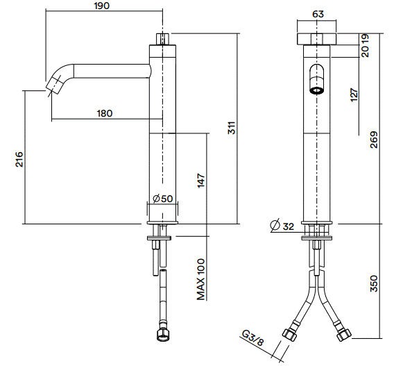 QuadroDesign Valvola01 Bateria umywalkowa brushed stainless steel 1902AS