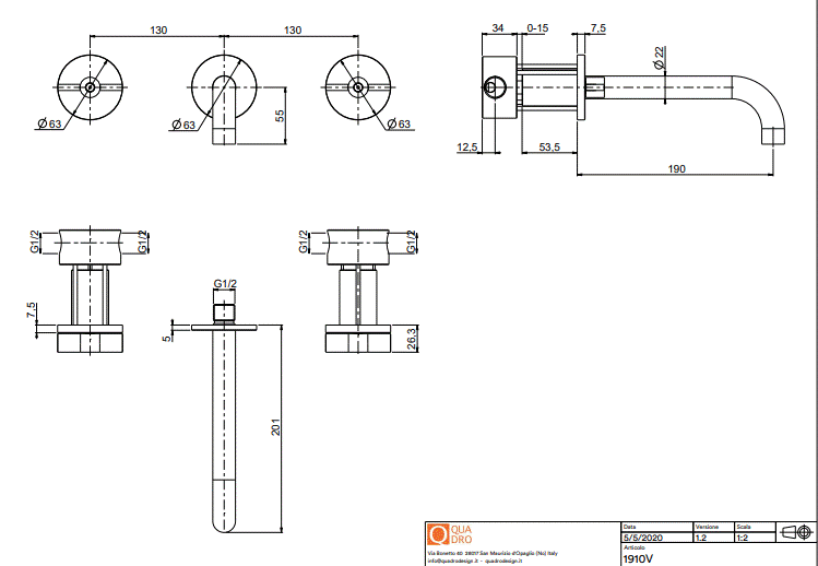 QuadroDesign Valvola01 Bateria umywalkowa podtynkowa brushed stainless steel 1911VAS