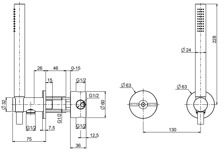 QuadroDesign Valvola01 Bateria prysznicowa podtynkowa ze słuchawką i wężem brushed stainless steel 1958AS