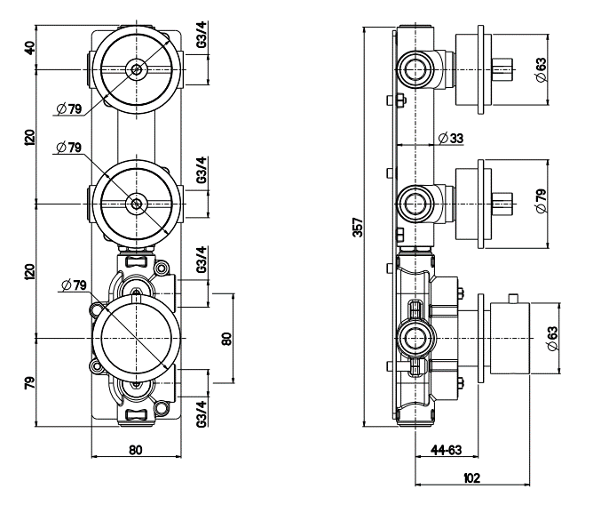 QuadroDesign Valvola01 Bateria prysznicowa termostatyczna podtynkowa z 2 zaworami odcinającymi brushed stainless steel 1949.0.00AS