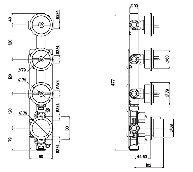 QuadroDesign Valvola01 Bateria prysznicowa termostatyczna podtynkowa z 3 zaworami odcinającymi brushed stainless steel 1950.0.00AS