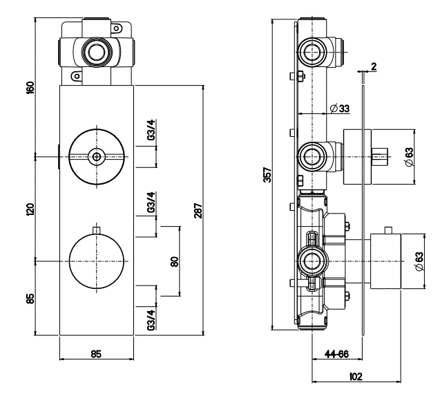 QuadroDesign Valvola01 Bateria prysznicowa termostatyczna podtynkowa z zaworem odcinającym brushed stainless steel 1988.0AS