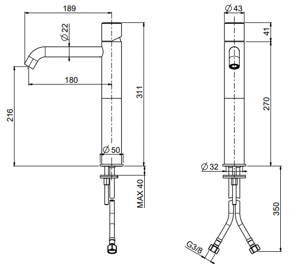 QuadroDesign Stereo Bateria umywalkowa brushed stainless steel 1602TAS