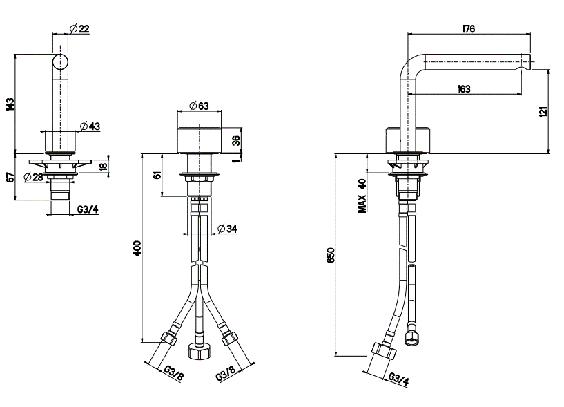 QuadroDesign Stereo Bateria umywalkowa brushed stainless steel 1631AS