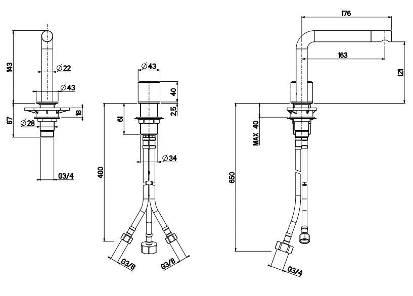 QuadroDesign Stereo Bateria umywalkowa brushed stainless steel 1607AS